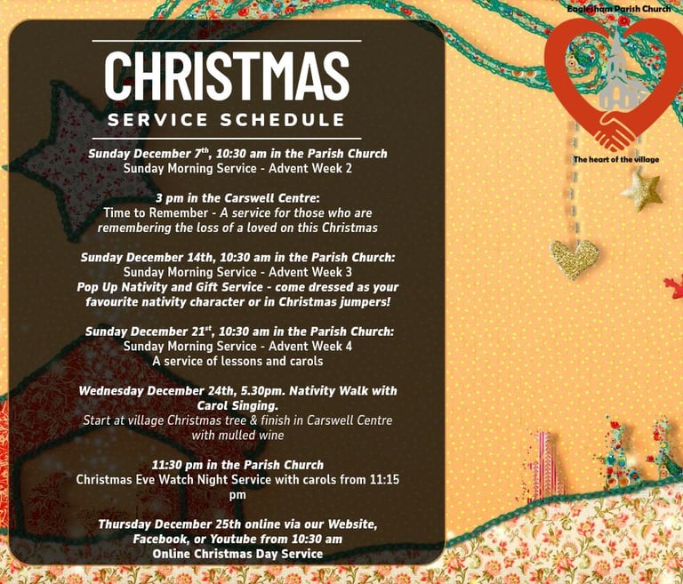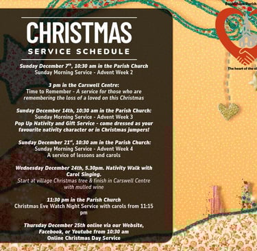 Sunday Service : Services are held in the church every Sunday at 10:30